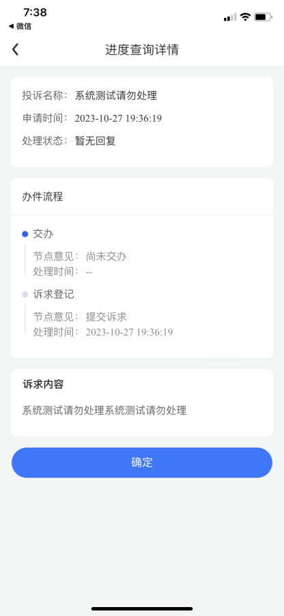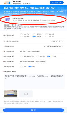 6.点击“进度查询”,查看历史反馈的处理进度。