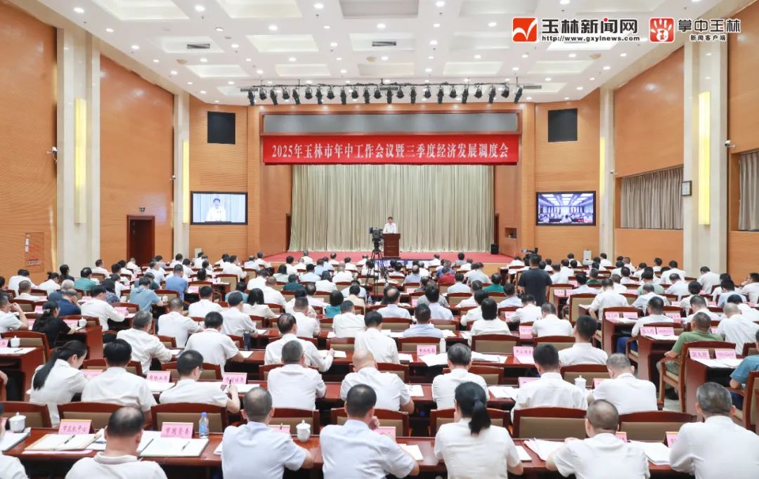 7月31日,2025年玉林市年中工作会议暨三季度经济发展调度会召开。市委书记王琛出席会议并讲话,强调要深入贯彻落实习近平总书记关于广西工作论述的重要要求,切实把思想和行动统一到以习近平同志为核心的党中央对当前经济形势的科学判断和对经济工作的决策部署上来,按照自治区党委十二届十次全会和2025年全区年中工作会议暨三季度经济发展调度会部署要求,坚持实干为要、创新为魂,用业绩说话、让人民评价,全力以赴做好三季度和下半年经济工作,确保高质量完成全年经济社会发展目标任务,奋力谱写中国式现代化玉林篇章。自治区党委深入贯彻中央八项规定精神学习教育第二督导组组长全桂寿等到会指导。市长张惠强主持会议。市人大常委会主任李伟章,市政协主席吕剑枫,市委副书记邓国忠出席会议。
