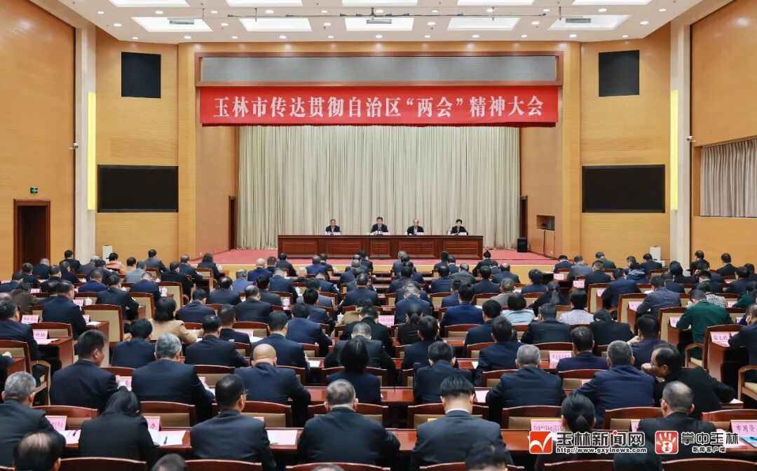 2月8日,玉林市传达贯彻自治区两会精神大会召开,市委书记王琛主持会议并讲话。